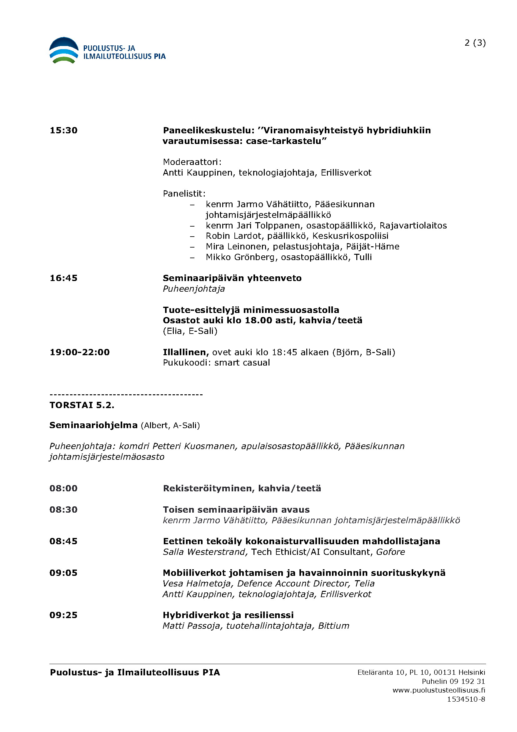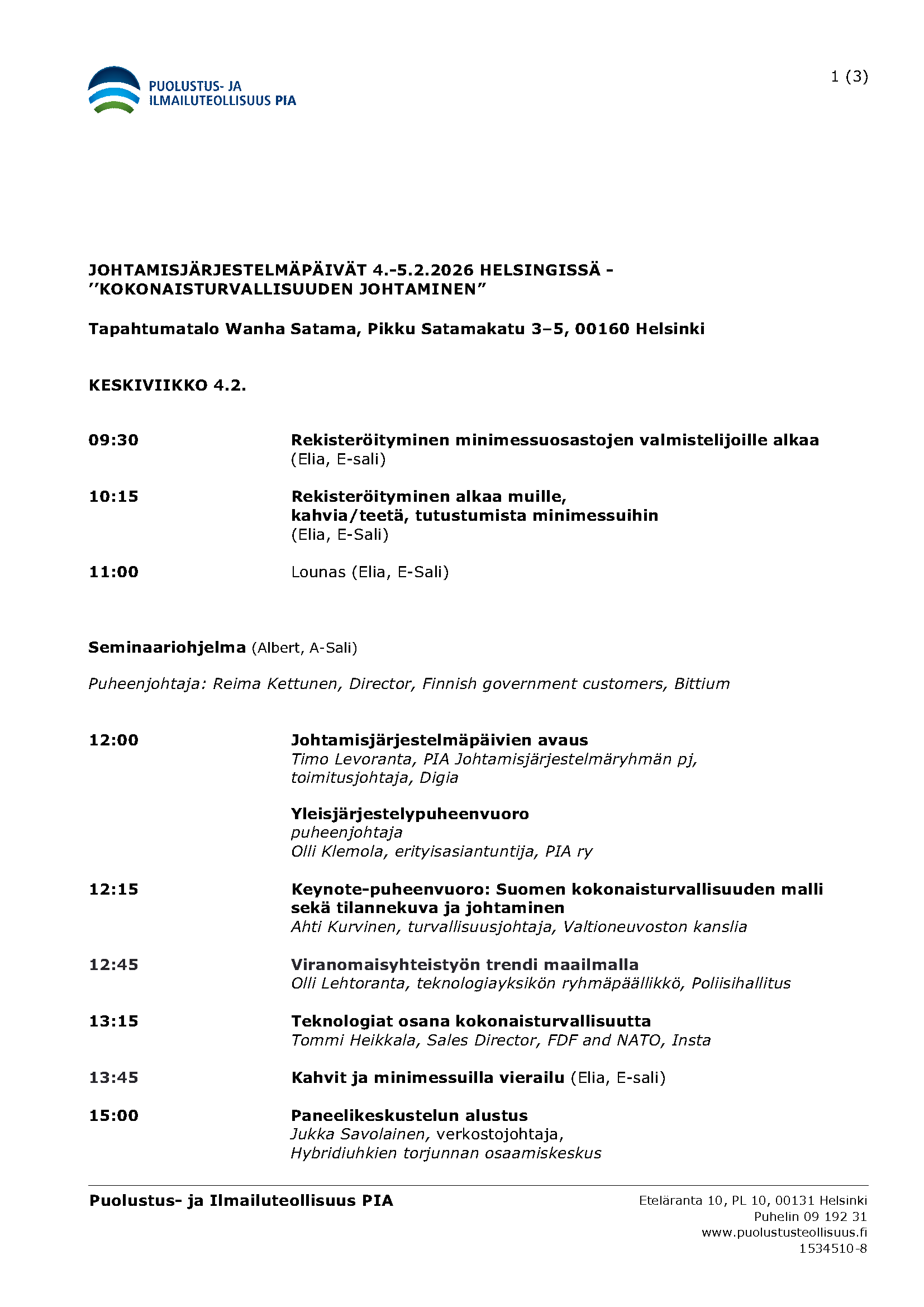 EDIT: TAPAHTUMA ON TÄYNNÄ EIKÄ ILMOITTAUTUMISIA OTETA ENÄÄ VASTAAN Seminaarit/webinaarit Sidosryhmätilaisuudet Liitteet Tiedosto KUTSU Johtamisjärjestelmäpäivät 4.-5.2.2026.pdf Tiedosto Johtamisjärjestelmäpäivät 2026 ohjelma.pdf
